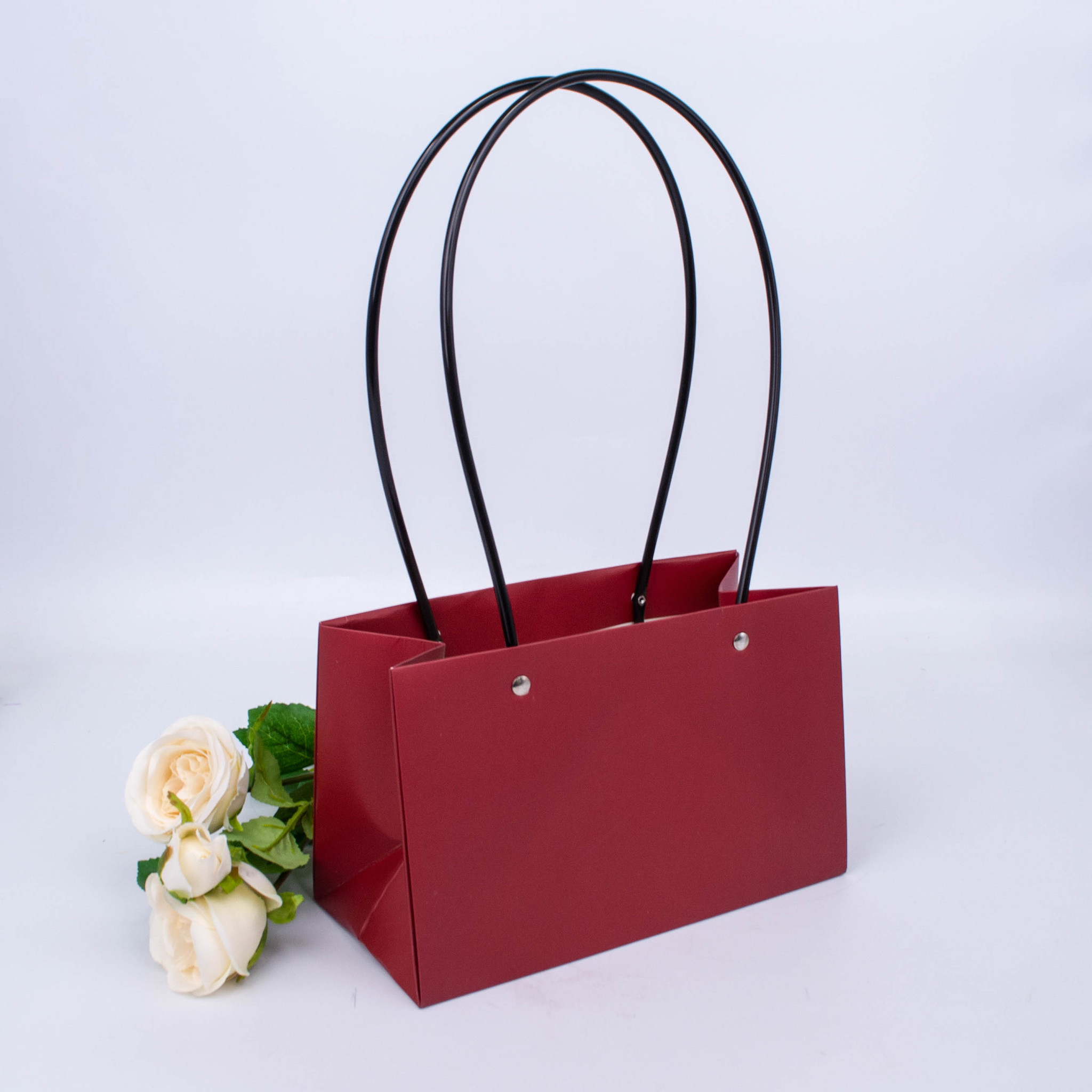 Пакет для цветов С Пластиковой Ручкой Размер: 12 см*8 см*12 см Цвет: Бордо