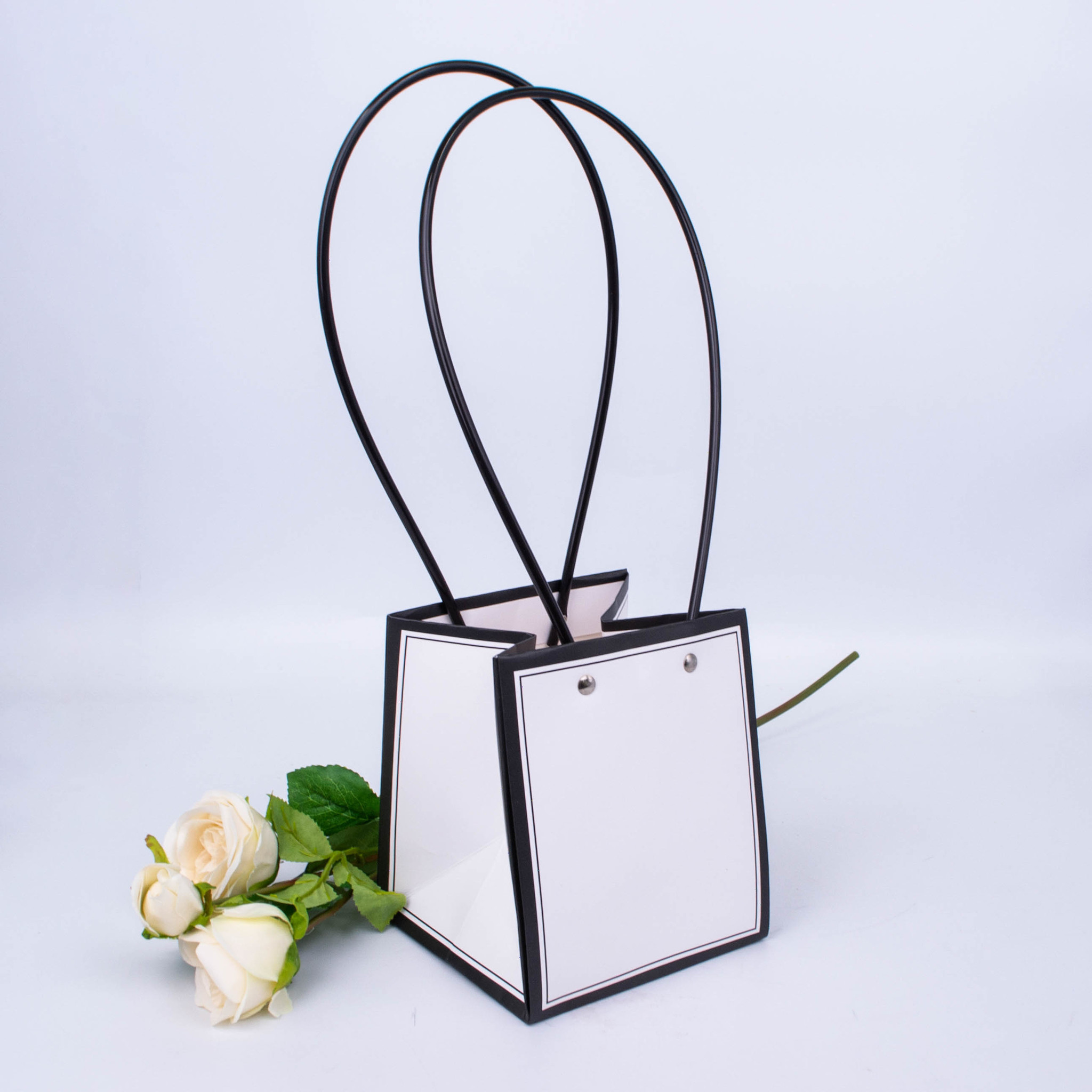 Пакет для цветов с черной окантовкой Размер: 13 см*13 см*15 см Цвет: Белый