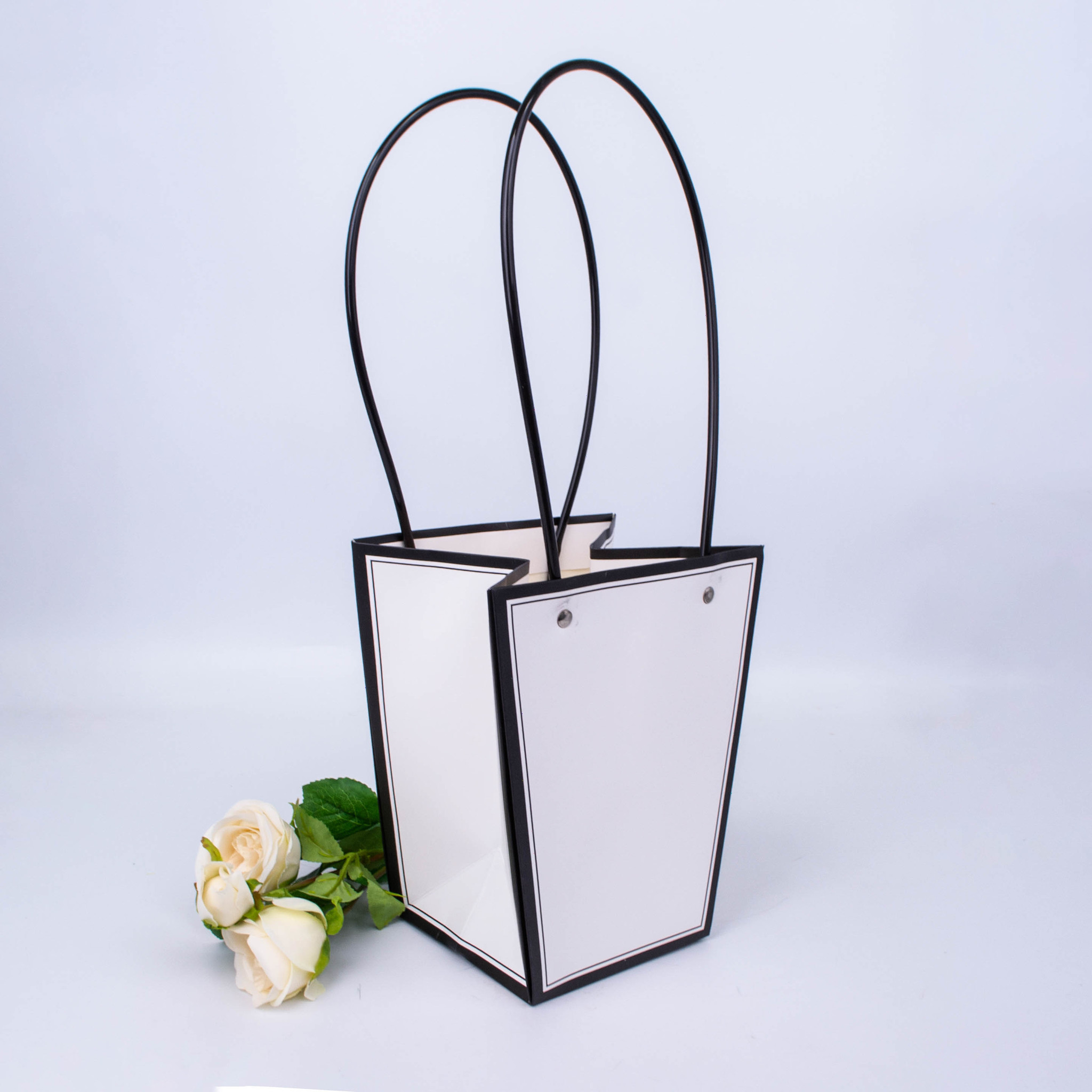 Пакет для цветов с черной окантовкой Размер: 20 см*12 см*17 см Цвет: Белый