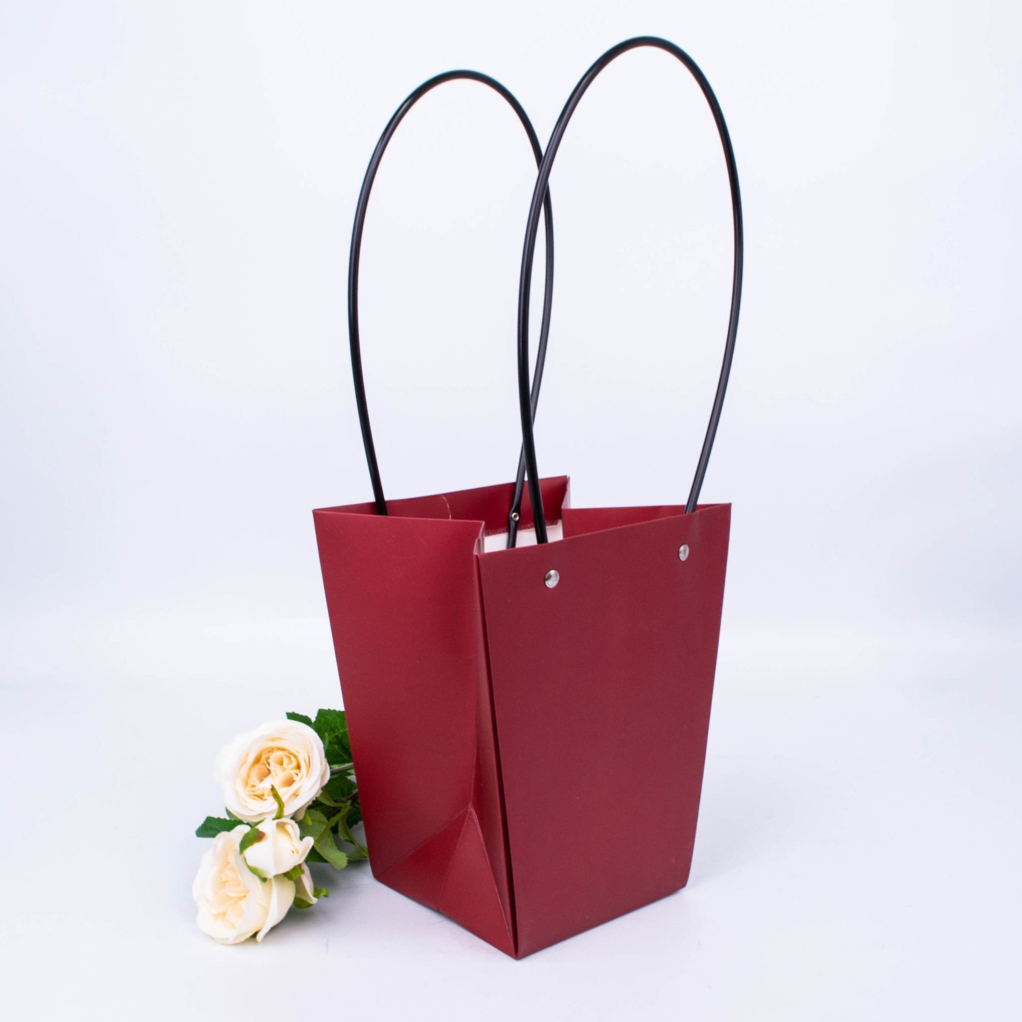 Пакет для цветов С Пластиковой Ручкой Размер: 20 см*12 см*17 см Цвет: Бордо