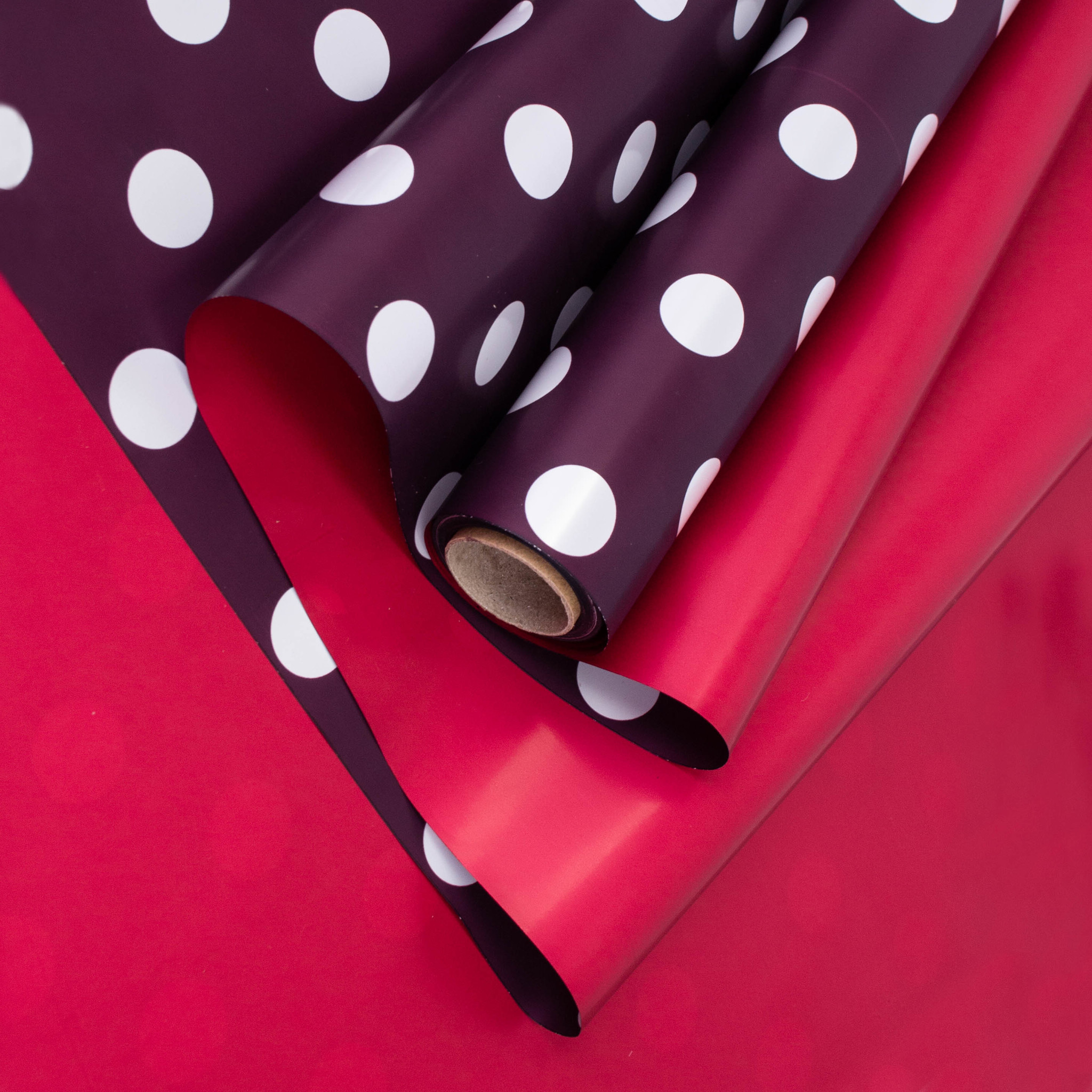 Пленка матовая двусторонняя ГОРОХИ Размер: 58 см*10 м Цвет: Красный/Сливовый
