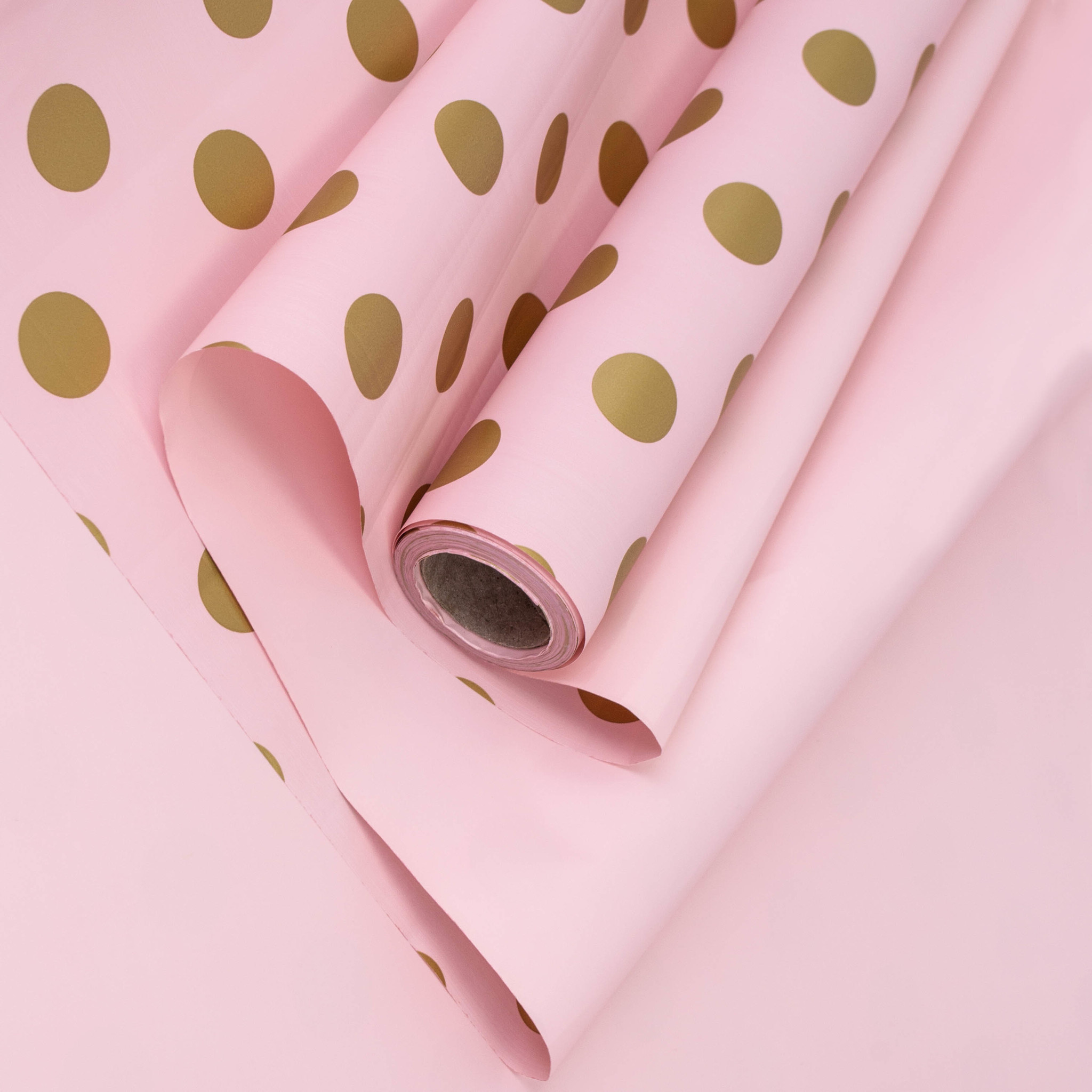 Пленка матовая двусторонняя ГОРОХИ Размер: 58 см*10 м Цвет: Розовый/Золотой