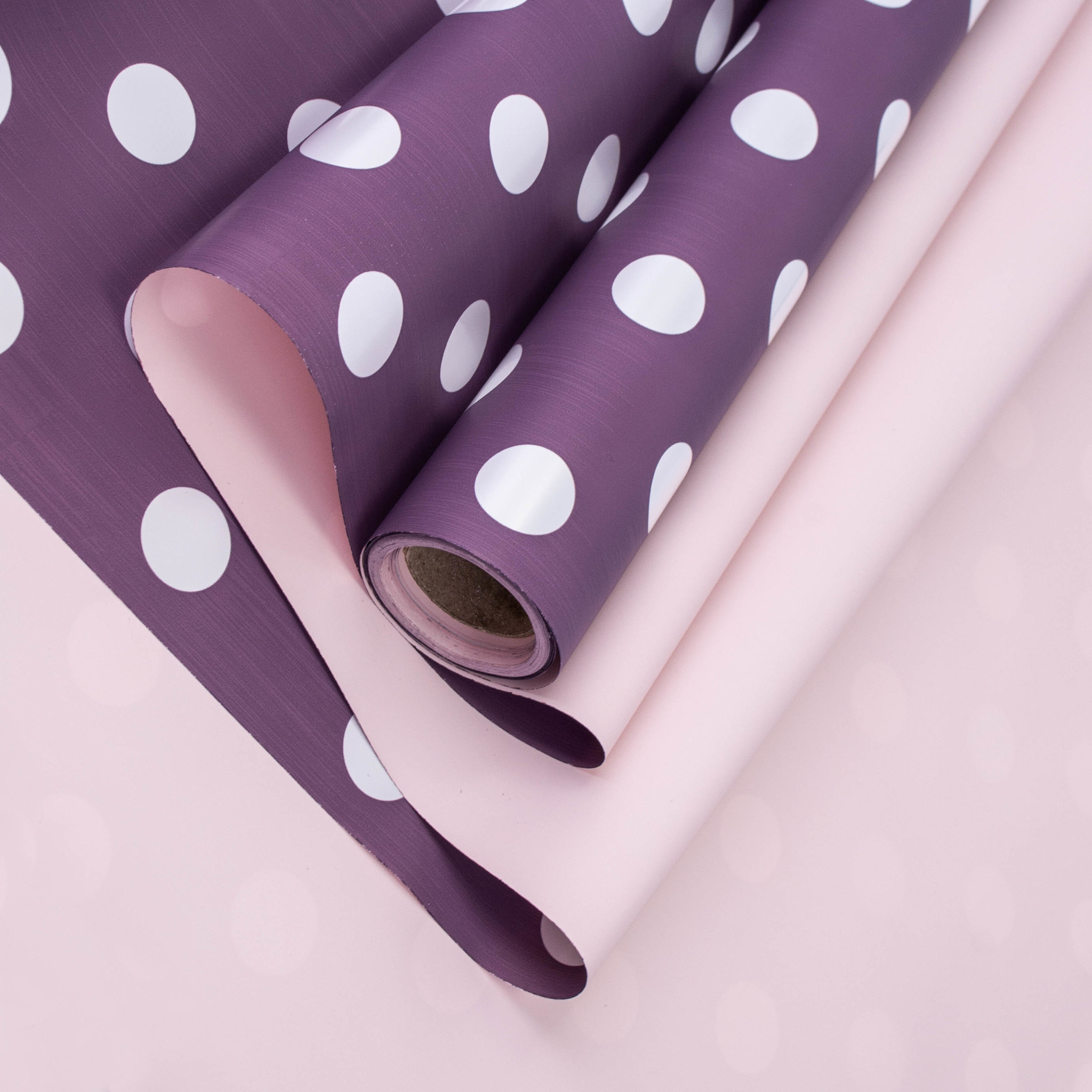 Пленка матовая двусторонняя ГОРОХИ Размер: 58 см*10 м Цвет: Сиреневый/Розовый