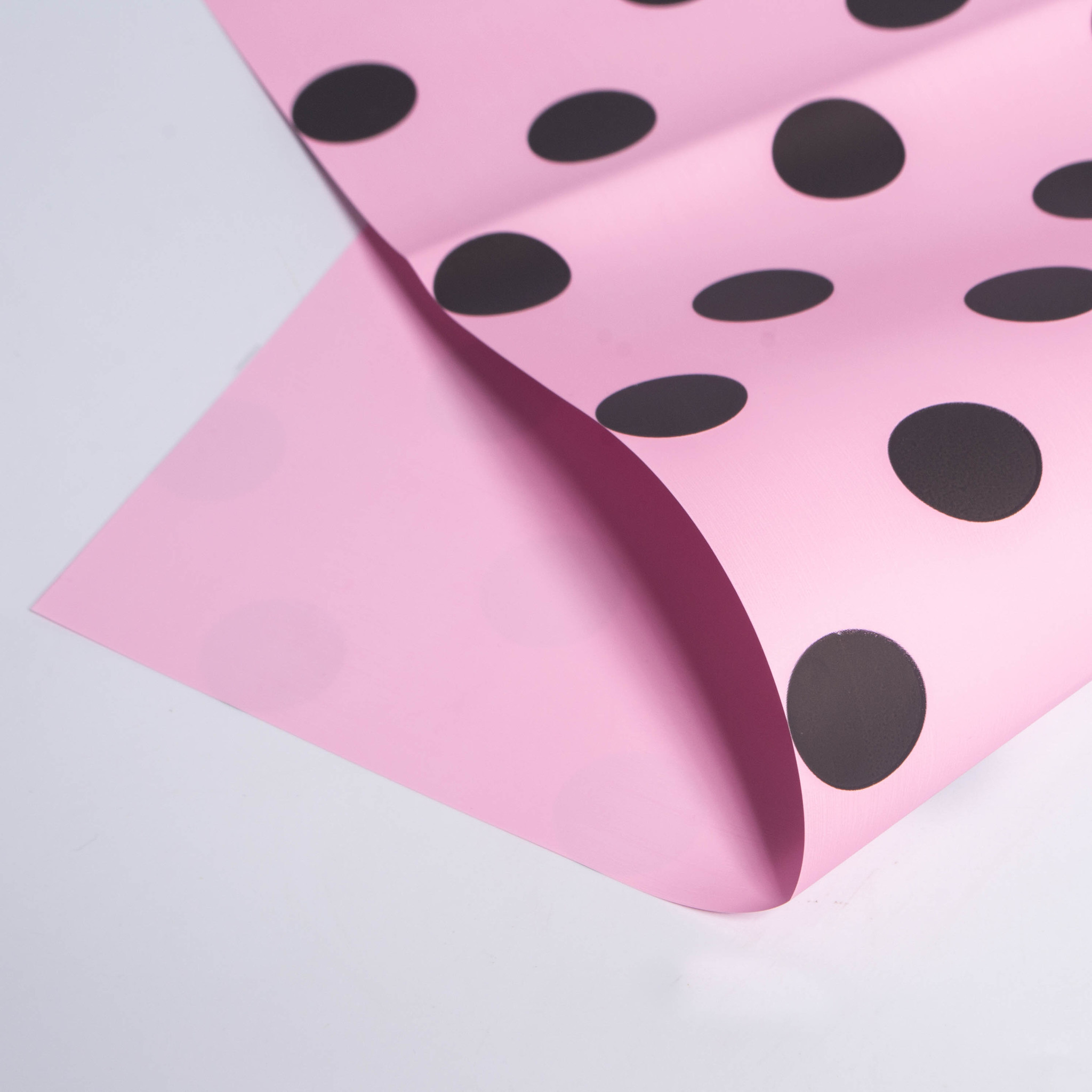 Пленка матовая двусторонняя "Горошек" Размер: 58*58 см Цвет: Розовый/Черный В упаковке: 20 листов