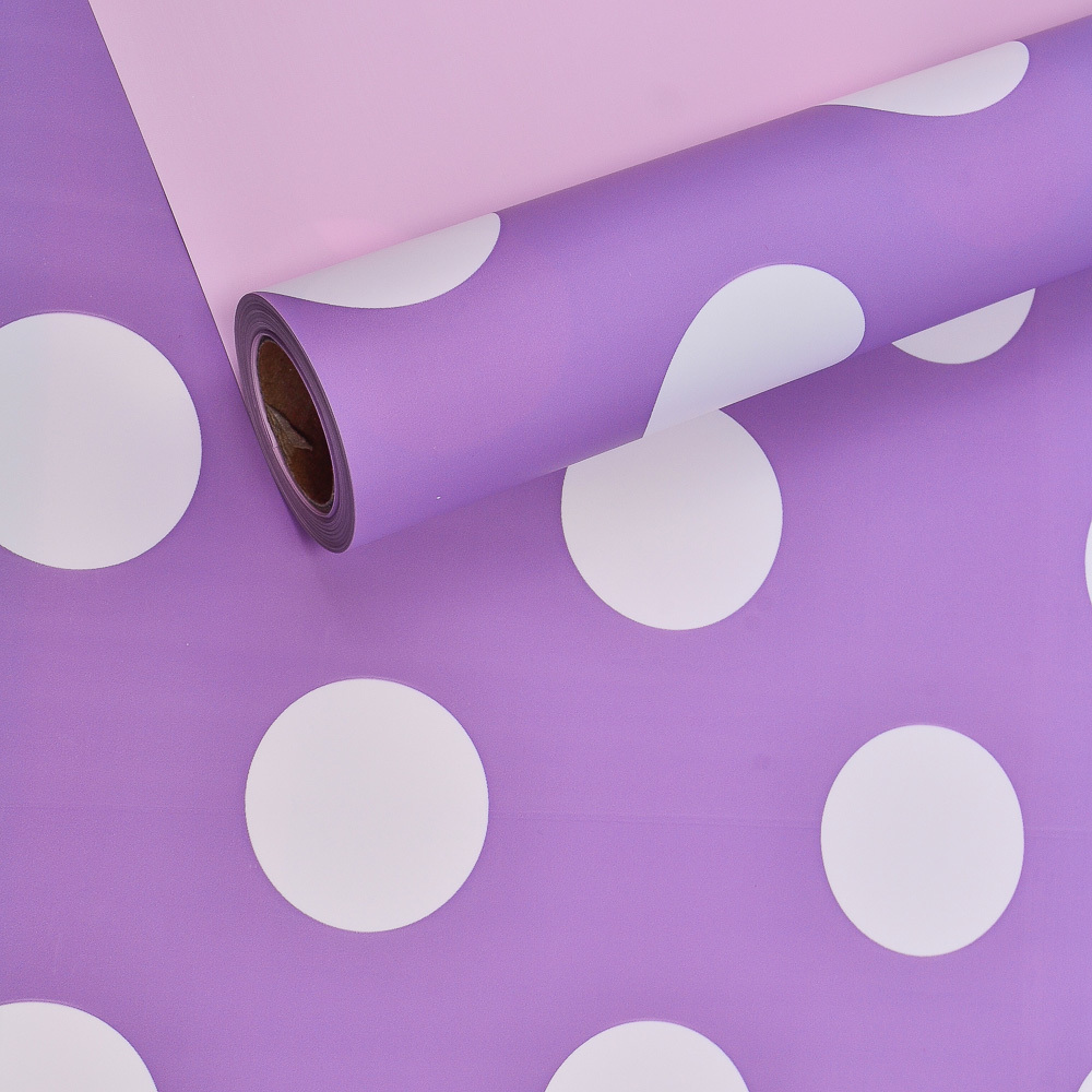 Пленка матовая двусторонняя "Горошины" Размер: 60 см*10 м Цвет: Фиолетовый/Розовый