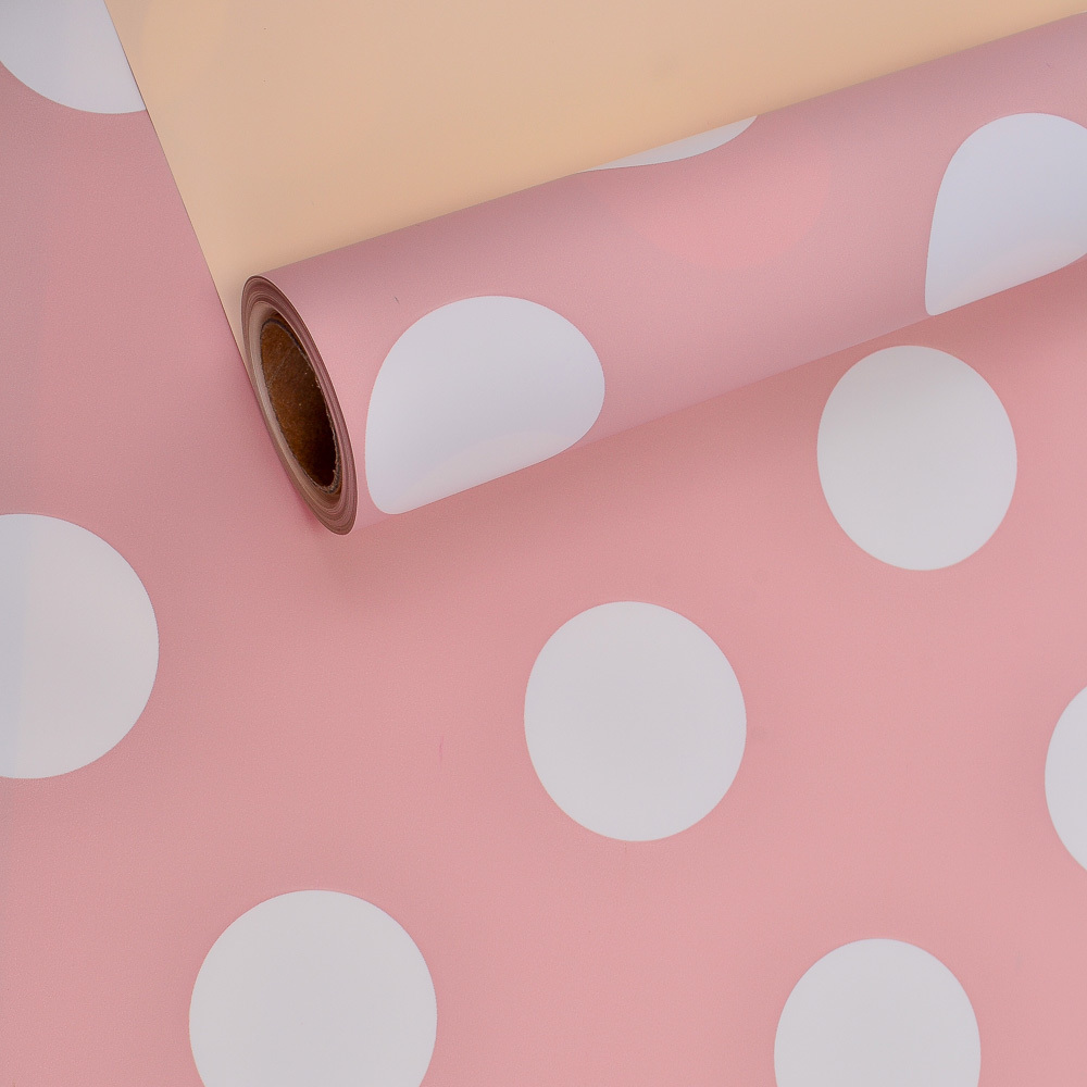 Пленка матовая двусторонняя "Горошины" Размер: 60 см*10 м Цвет: Розовый/Персиковый