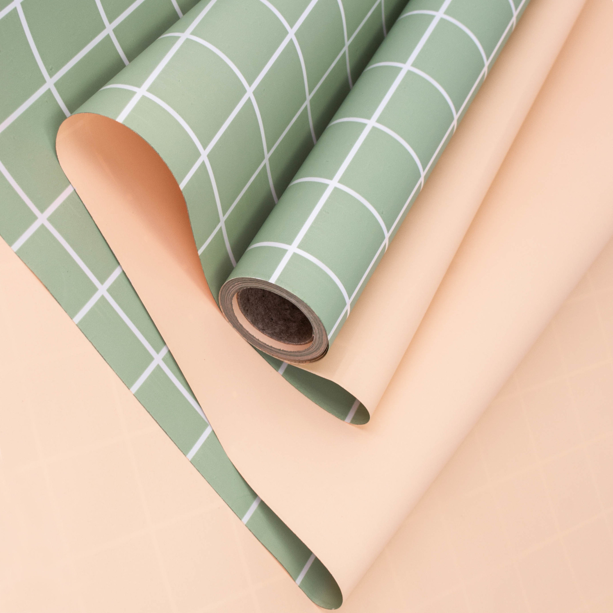 Пленка матовая двусторонняя Клетка Размер: 58 см*10 м Цвет: Хаки/Персиковая
