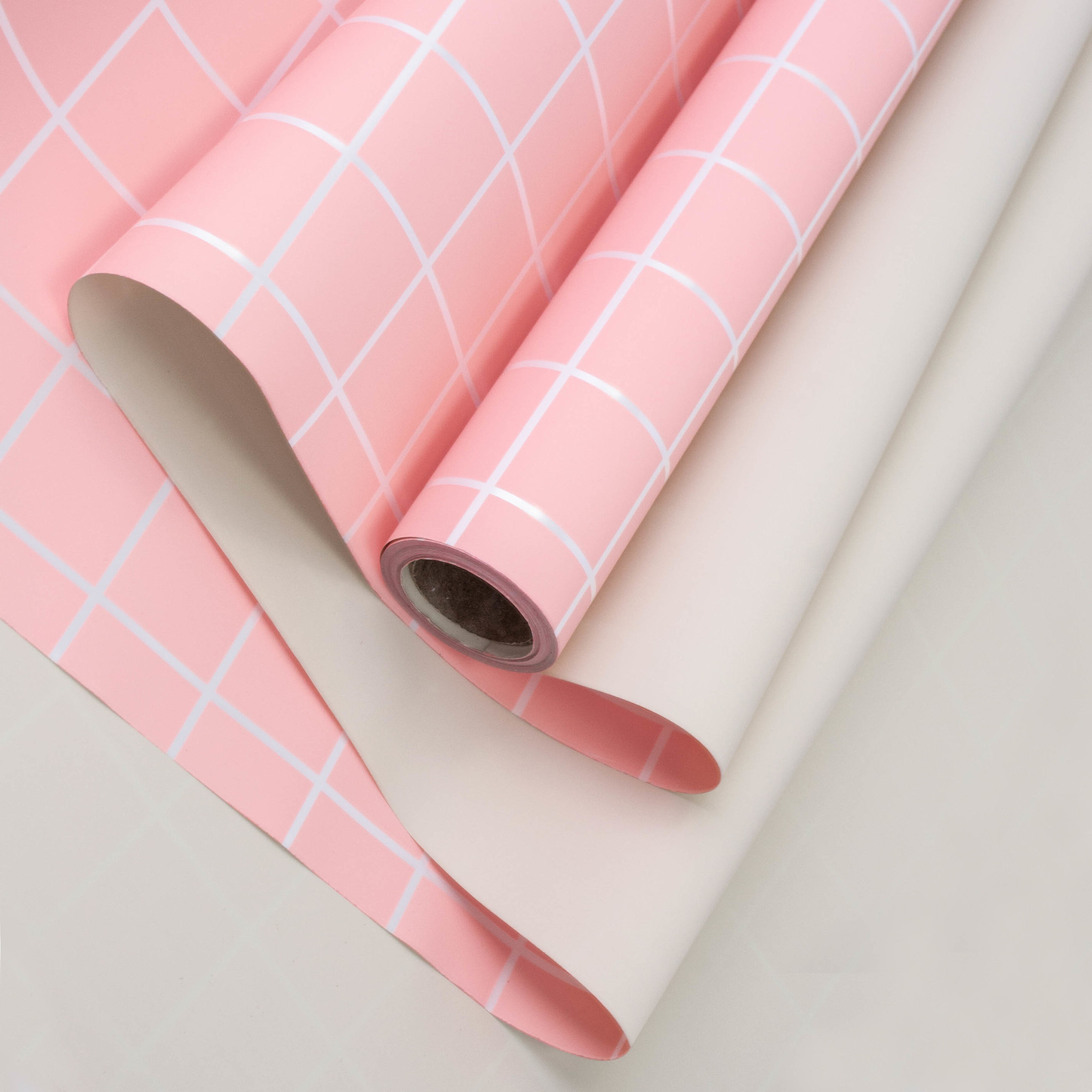 Пленка матовая двусторонняя Клетка Размер: 58 см*10 м Цвет: Розовый/Бежевый