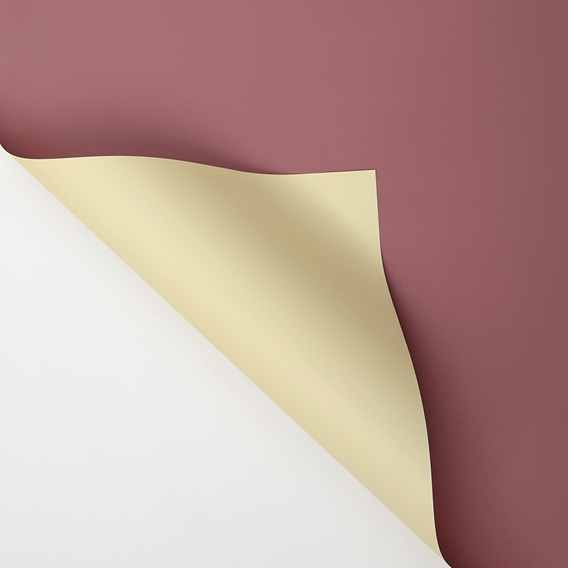 Пленка матовая двусторонняя Размер: 58*58 см Цвет: Темно-малиновый/Бежевый В упаковке: 20 листов