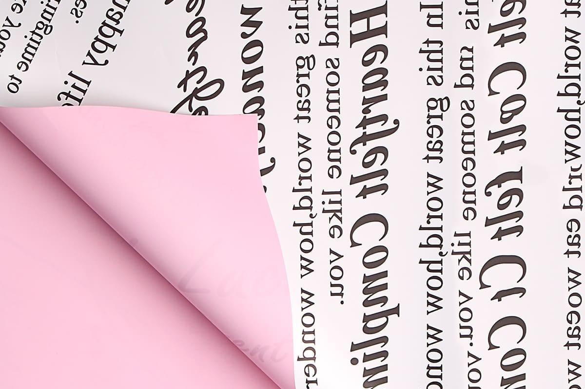 Пленка пастельная "Надписи" Размер: 58 см*58 см Цвет: Розовый В упаковке: 20 листов