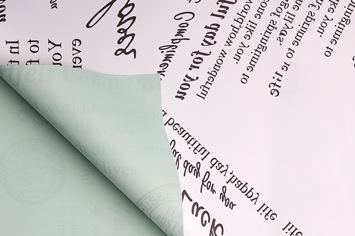 Пленка пастельная "Надписи" Размер: 58 см*58 см Цвет: Салатовый В упаковке: 20 листов