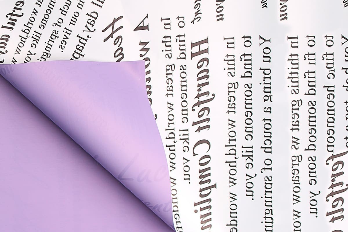 Пленка пастельная "Надписи" Размер: 58 см*58 см Цвет: Сиреневый В упаковке: 20 листов