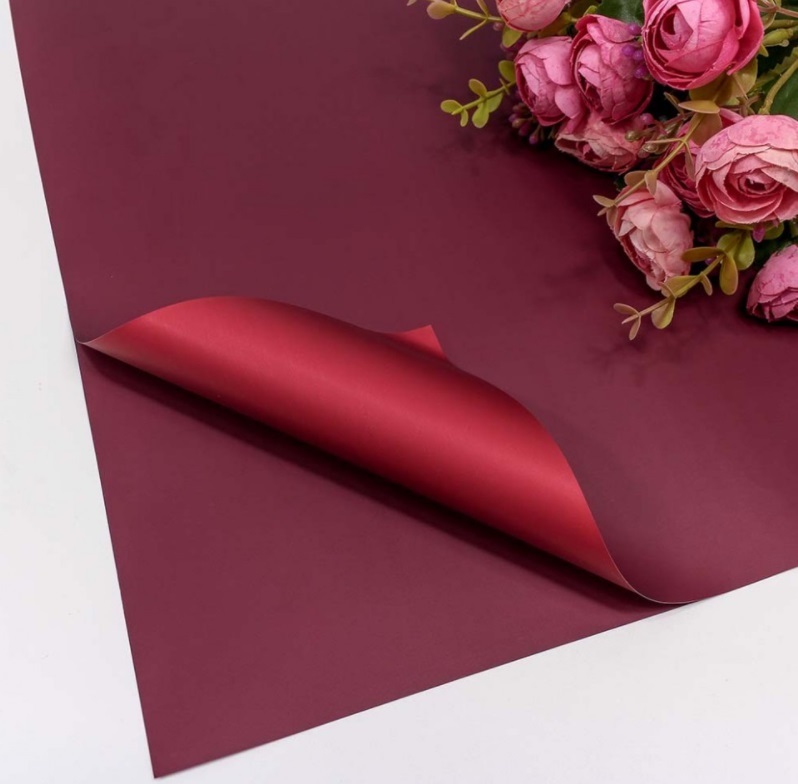 Пленка в листах матовая двухсторонняя Размер: 60*60 Плотность: 65мкм Цвет: Лиловый/Красный В упаковке: 20 шт.