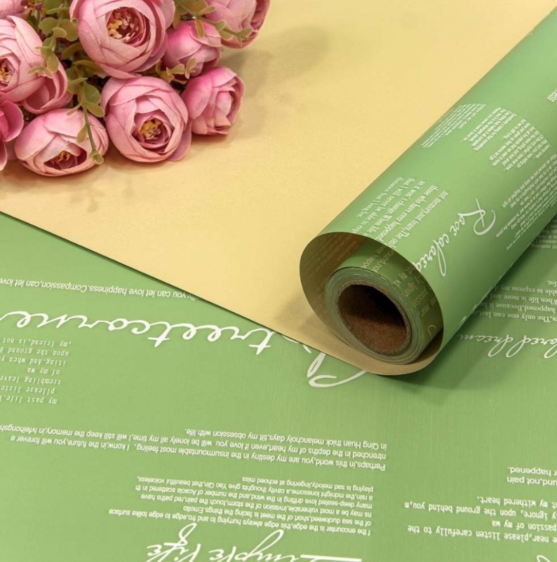 Пленка матовая двухсторонняя с надписями Размер: 0,58*10м Плотность: 65мкм Цвет: Хаки/Персиковый