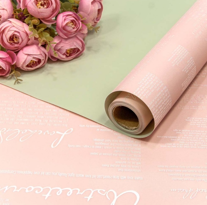Пленка матовая двухсторонняя с надписями Размер: 0,58*10м Плотность: 65мкм Цвет: Пудровый/болотный