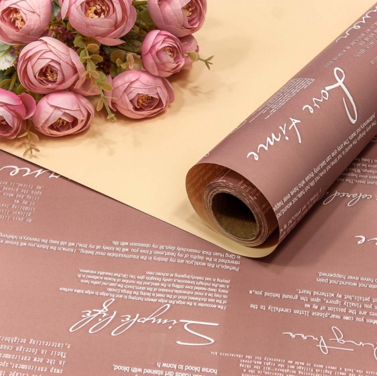 Пленка матовая двухсторонняя с надписями Размер: 0,58*10м Плотность: 65мкм Цвет: Светло-коричневый/Серовато-желтый
