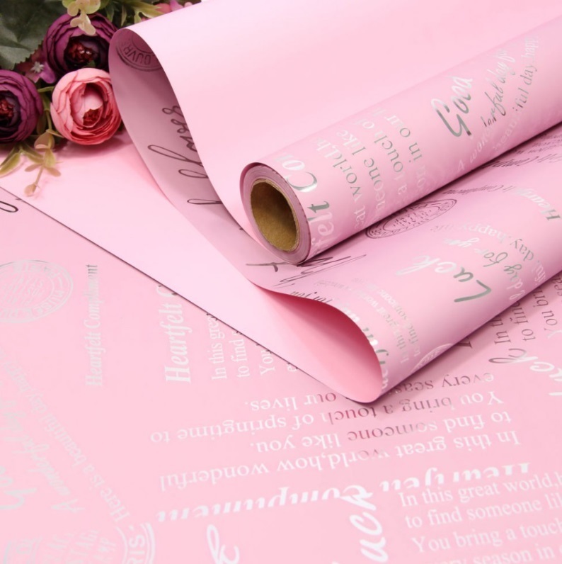 Пленка матовая двухсторонняя с серебряным тиснением Светло-сиреневая/Розовая