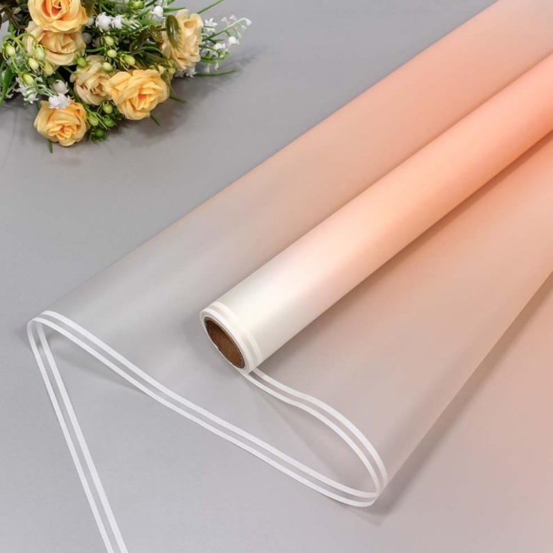 Пленка матовая с двойной белой полосой Размер: 0,58*10м Плотность: 50мкм Цвет: Светлый желто-розовый