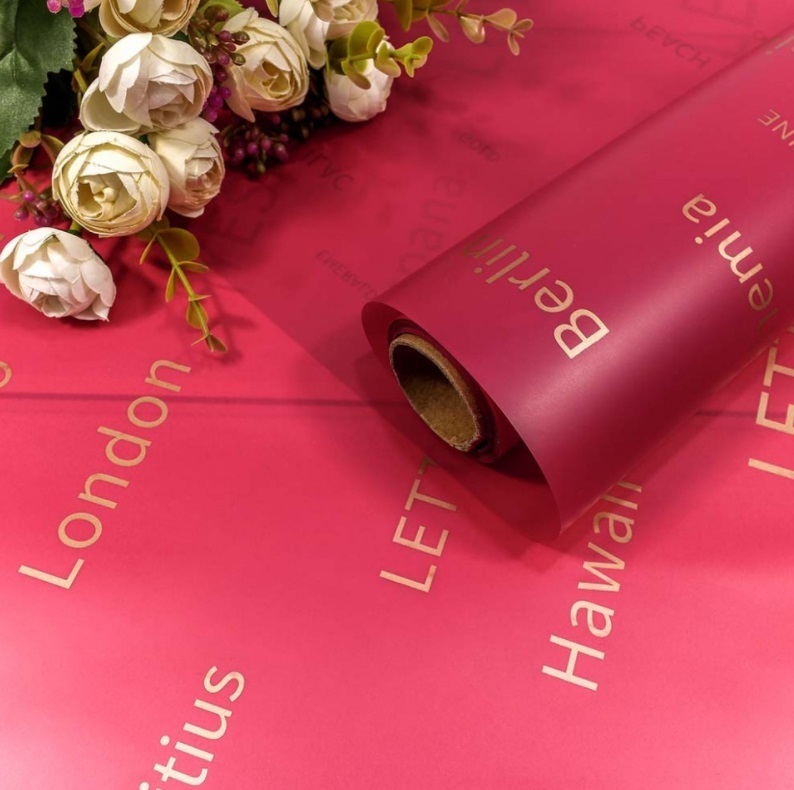 Пленка матовая с золотым тиснением Размер: 0.58*10м Плотность: 50мкм Цвет: Вишневый