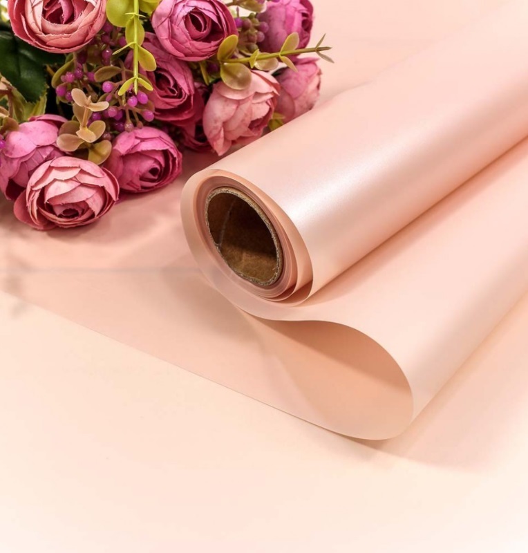 Пленка рулон с жемчужным отливом Рамер: 0,58*10м Плотность: 50мкм Цвет: Светло-розовый