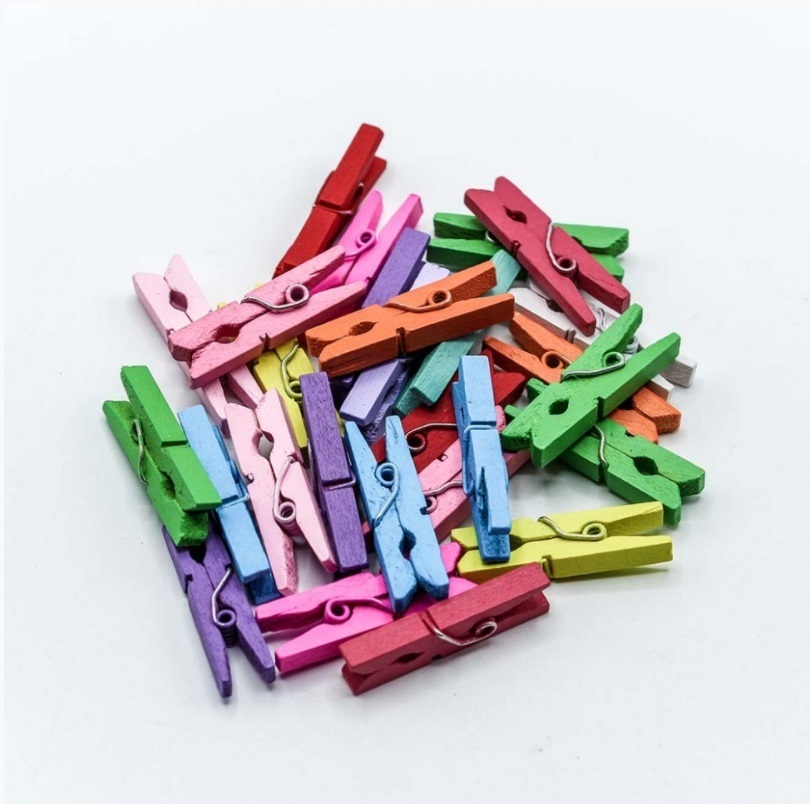 Цветочный аксессуар Прищепки декоративные Размер: 3*0,8*0,4 Цвет: Цветные В упаковке: 100 шт.