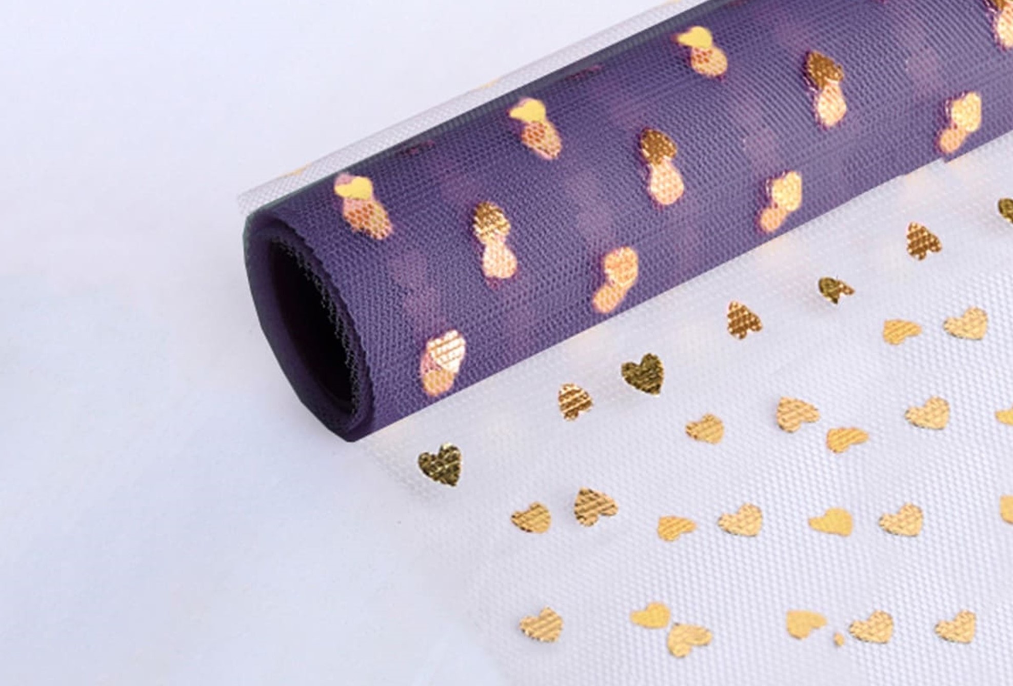 Сетка мелкая "Золотые сердца" Размер: 50 см*5 ярд Цвет: Фиолетовый