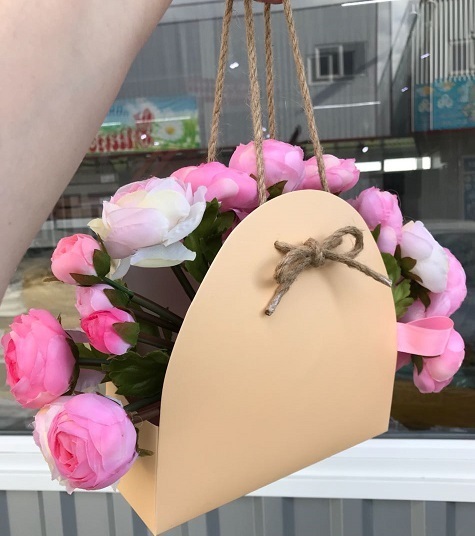 Сумка-переноска для цветов с ручкой Персик